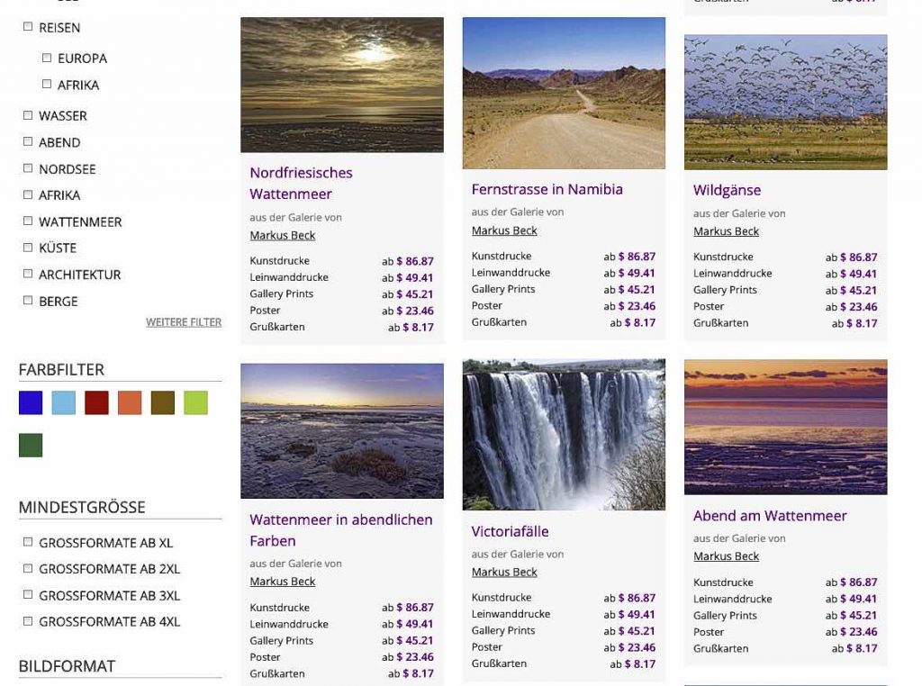 Auf einen eigenen Shop verzichten wir – es würde nicht funktionieren. Wir wären zu teuer, und auch die Lieferzeiten wären zu lang. Die Profis können das besser. Hier finden Sie also die Links zu den Shops, wo Sie unsere Bilder kaufen können, als Print oder auch als Poster. Auch Wandbilder oder Kalender unserer Bilder gibt es hier.